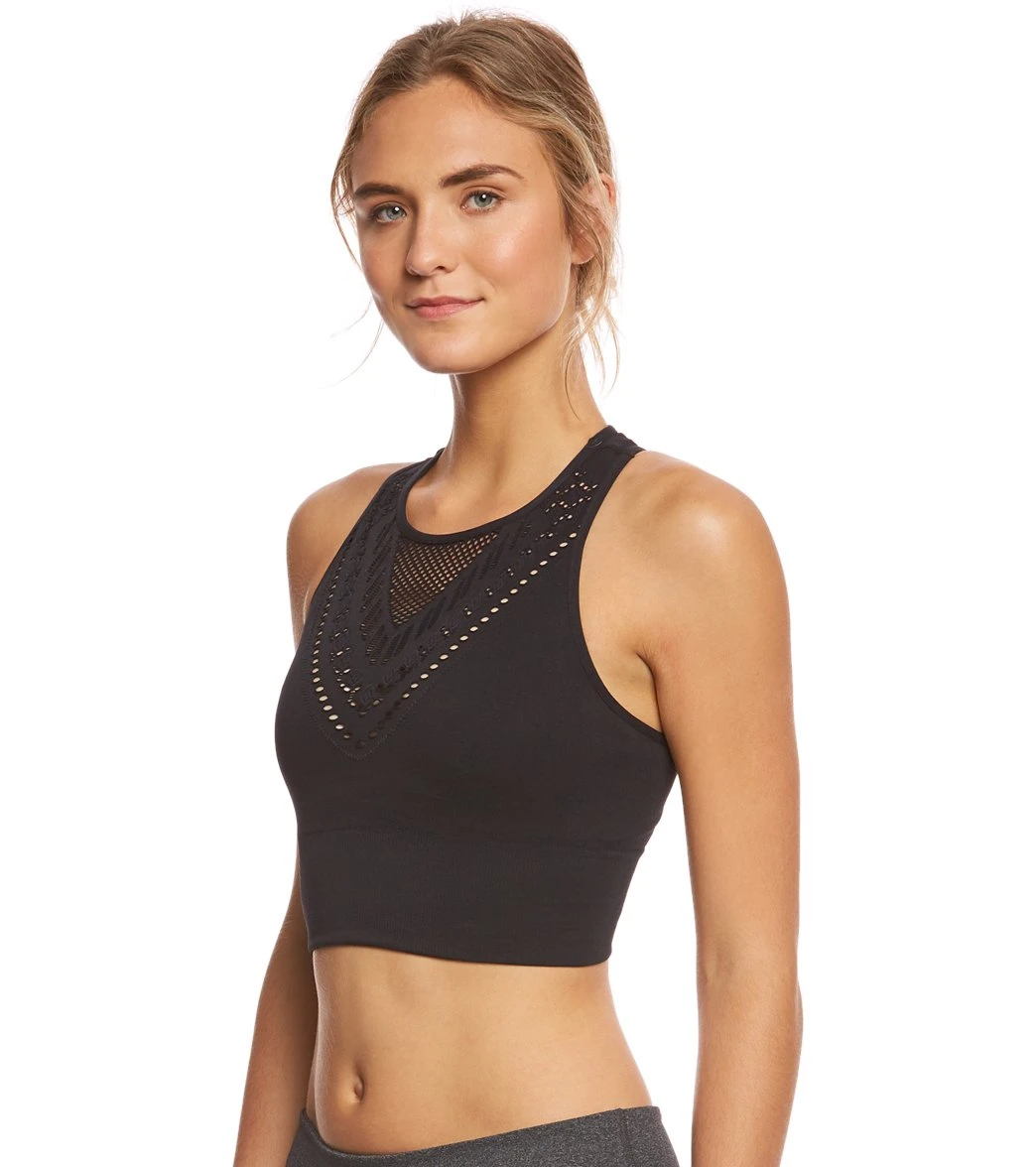 Comfort meets function and style in the Betsey Johnson Mesh Mapped Extended Seamless Yoga Crop Bra. Made with a seamless construction and a long crop length, this athletic style crop top is the perfect go-to for all of your workout needs.