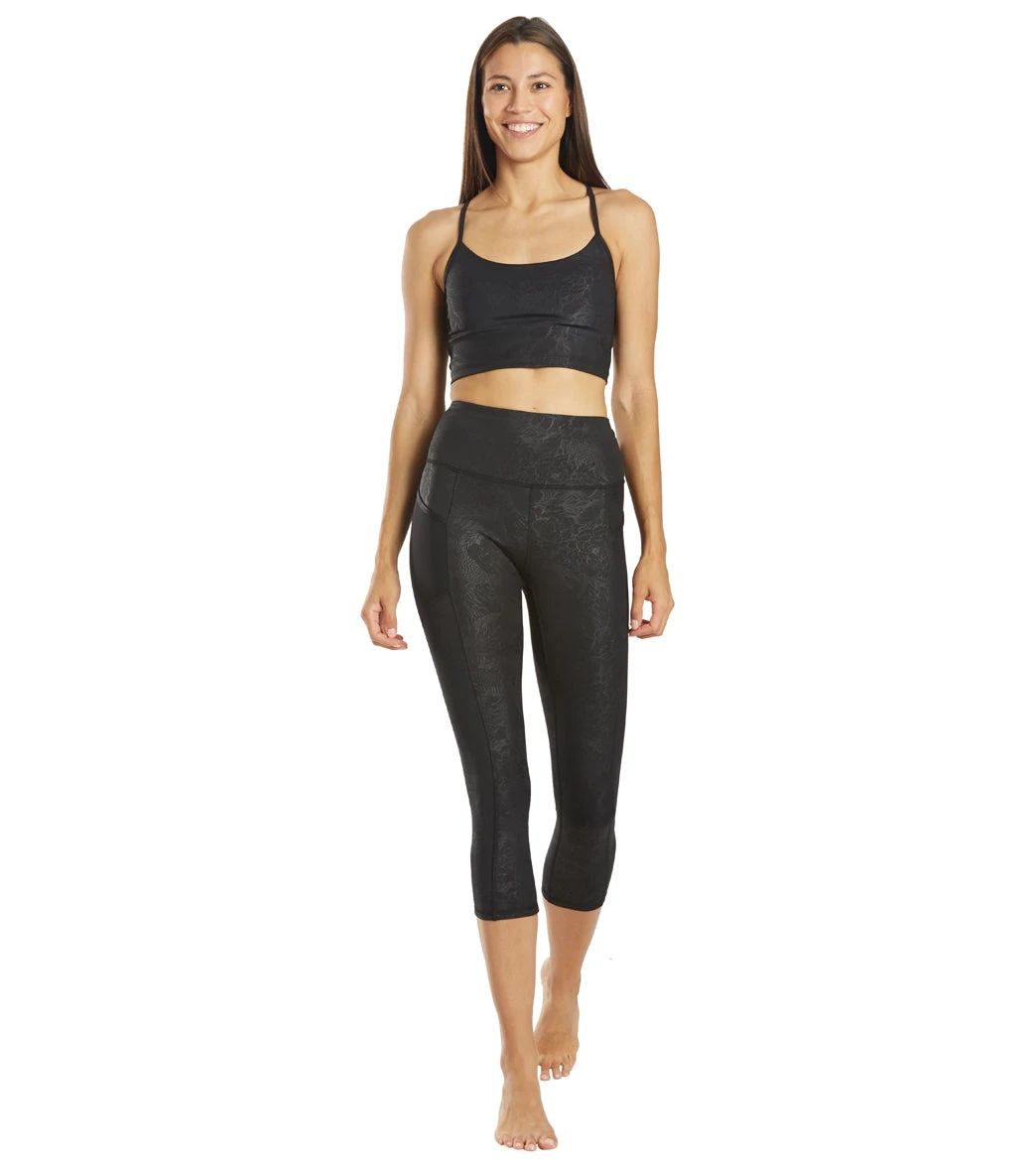 Fashion meets function in the Marika Ivy Sports Bra featuring an embossed floral print and moisture wicking fabric.