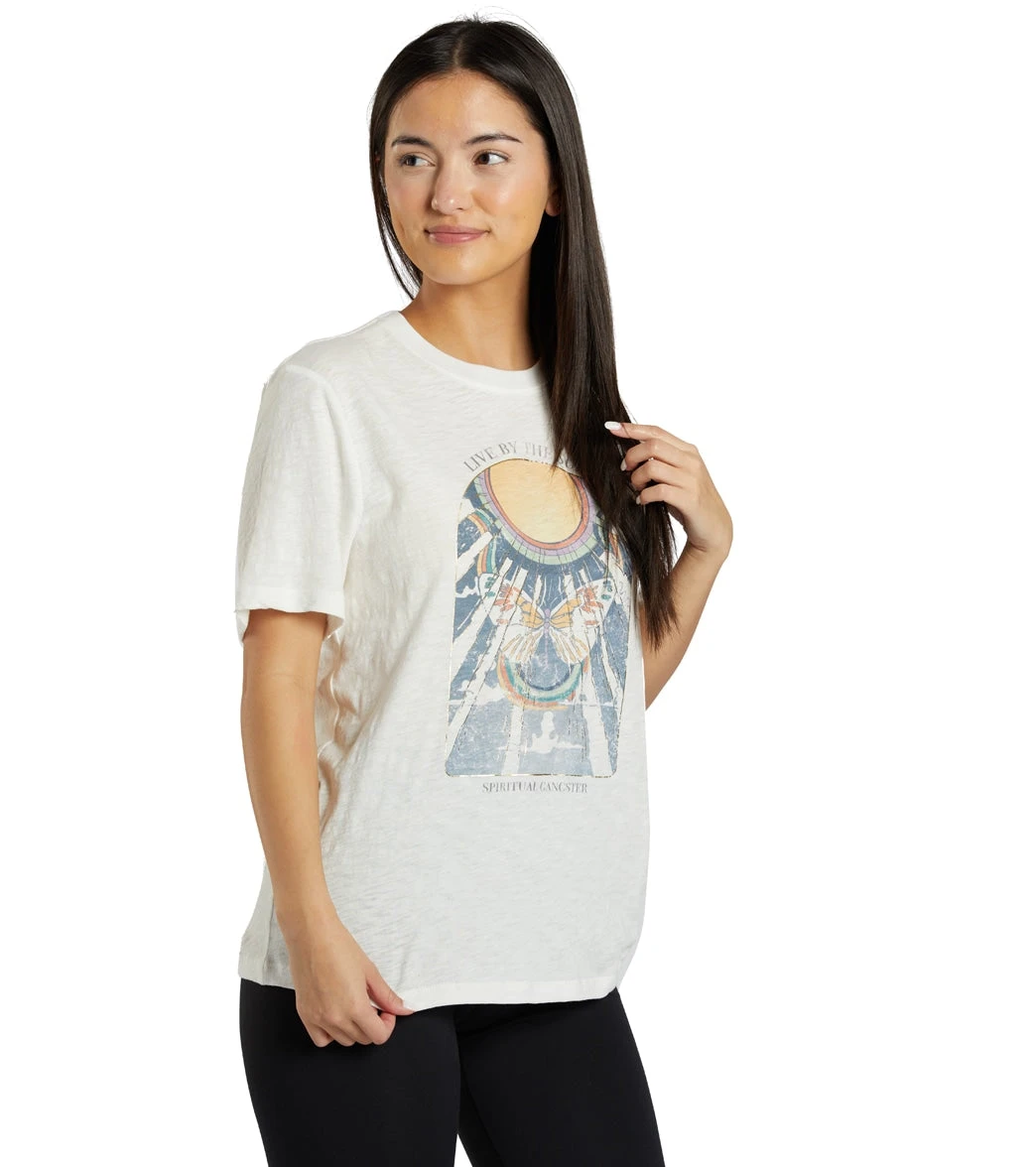 Rep your love and gratitude for the sun in the Spiritual Gangster Live By The Sun Short Sleeve, designed in soft 100% cotton. With a cool, lived-in vintage vibe, it adds a playful edge to your flow.
